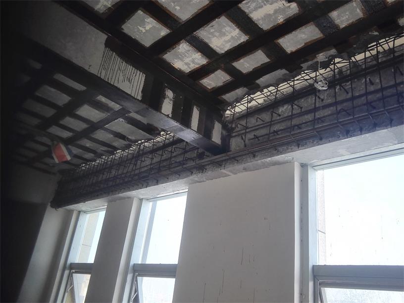 農(nóng)行北站支行星漢路(網(wǎng)點(diǎn))裝修局部結(jié)構(gòu)梁板加固位置處