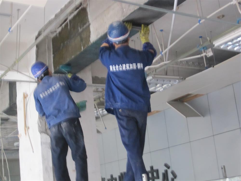 工行樂(lè)山分行沙灣支行辦公樓底層框架梁、柱碳纖維加固工程